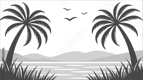 Tropical beach scene with palm trees and ocean view