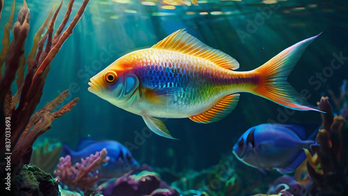 fish, aquarium, goldfish, water, animal, gold, isolated, sea, underwater, nature, pet, tropical, aquatic, white, swim, tank, fish, orange, colours, ocean, fresh water, black, blue, pet, fin, pretty, iridescent, shiny, scale, gill, free, food, generative, ai
