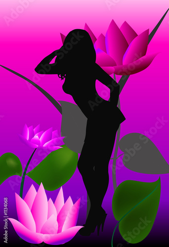 background, body, clip art, erotic, female, girl, illustration, people, person, silhouette, woman, light, beauty, shape, breast, black, fantasy, pink, flower, leaf, water lily, shadow, flash, glamour, gaze, attractive, sexy, contour, chic, naked, pose, profile, sex, heel, design, disrobed, desired, ideal, model, dream, fatal