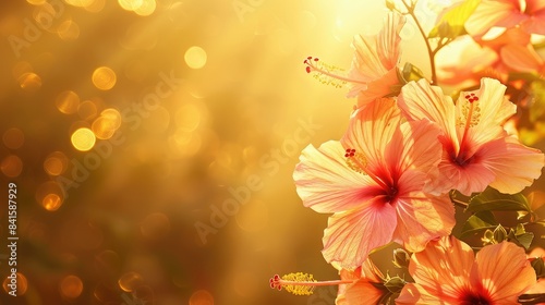 Tropical hibiscus flowers under golden sunlight
