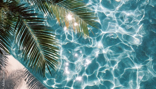 pool, water, surface, tropical, palm, leaf, sunlight, ripple, blue, green, summer, vacation, relaxation, tranquil, shine, light, reflections, abstract, texture, pattern, water, bright, sunny, hot, exterior, paradise, resort, holiday, calm, fresh, clean, ocean, still, depth, detail, glare, nature, image, top, view, daytime, patterned, summer, vibrant