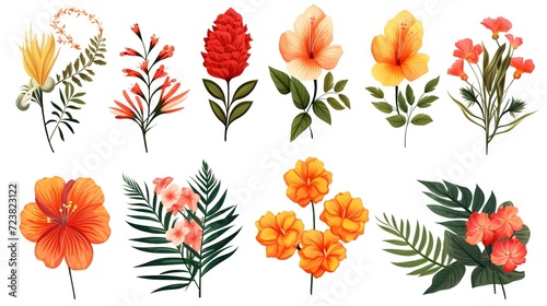 Tropical set of hand drawn floral arrangement. Vector botanical illustration. Layouts for the design of greeting cards and invitations, ,generative ai