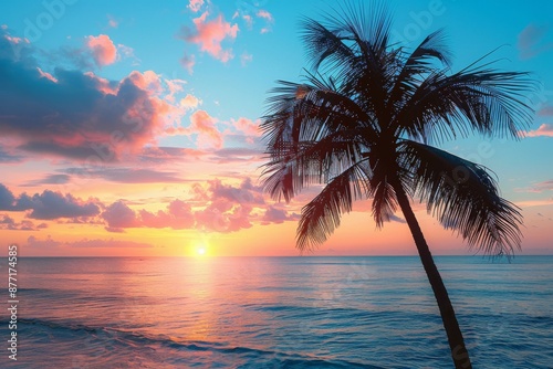 tropical, sunset, beach, palm tree, ocean, sea, horizon, twilight, wave, cloud, sky, landscape, travel, vacation, scenic, paradise, serene, tranquil, dusk, natural beauty, island, summer, evening, colourful, relaxing, idylli, nature, exotic, sun, picturesque, coastline, tropical paradise, peaceful, water, scenery, tropical beach, atmosphere, romantic, majestic, adventure, wanderlust, get-away, honed, dreamy