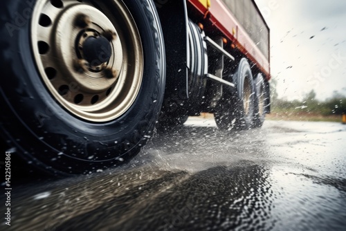 truck, wheel, tire, splash, road, puddle, rain, mud, transport, commercial vehicle, cargo, logistic