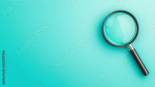 Trust confidence and transparency, A close-up view of a magnifying glass placed on a solid turquoise background, symbolizing investigation and clarity.