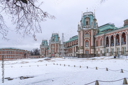 Tsaritsyno is a palace and park ensemble in the south of Moscow, founded by order of Empress Catherine II in 1776. An ancient palace and New Year decorations. New Year's holidays in Tsaritsyno.