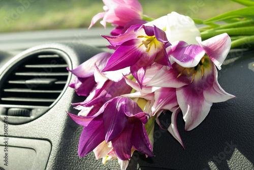 bouquet, many, purple, machine, inside, salon, instrument, panel, flower, plant, lie, spring