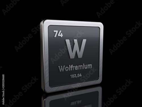 Tungsten W, element symbol from periodic table series. 3D rendering isolated on black background