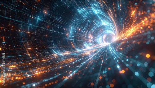 Tunnel of Innovation: A captivating digital depiction of a luminous tunnel, filled with streams of light and intricate, interwoven patterns.