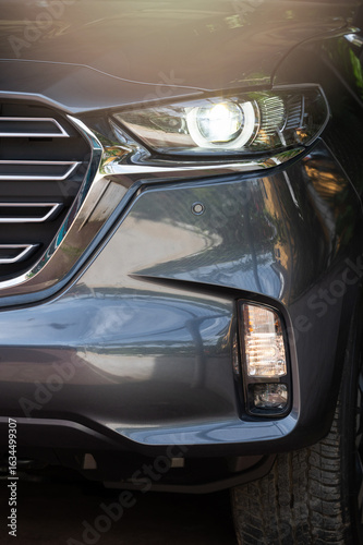 truck, drive, front, light, closeup, transportation, car, vehicle, headlamp, lamp, headlamp, new, design, modern, automobile, auto, automotive, transporter, front view, illumination, headlamp, optical, head, lens, led, beam, detail, shiny, black, signal, street