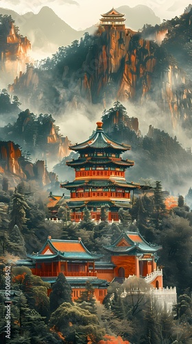 green, gold, zen, traditional, architecture, tree, pavilion, temple, chinese, mountain, landscape, artwork, watercolor, garden, cloud, illustration, artistic, art, paint, abstract, decorative, painting, geometric, generative, nature, tree, wallpaper, forest, design, decoration, plant, drawing, history, asia, historic, old, tour tourism, building, culture, ancient, china, roof, tower, mountain, vintage, park