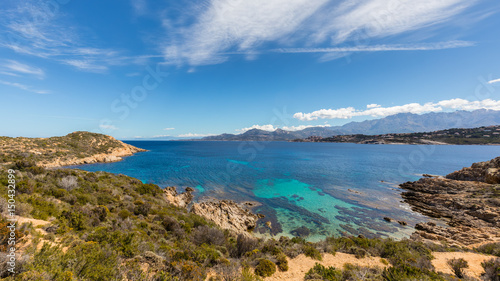 Turquoise sea and rocky coastline at Revellata in Corsica