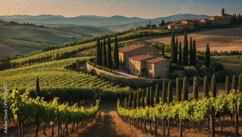 Tuscany landscape with vineyard