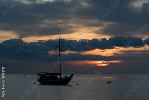 Twilight scene of boat with cloudy sky