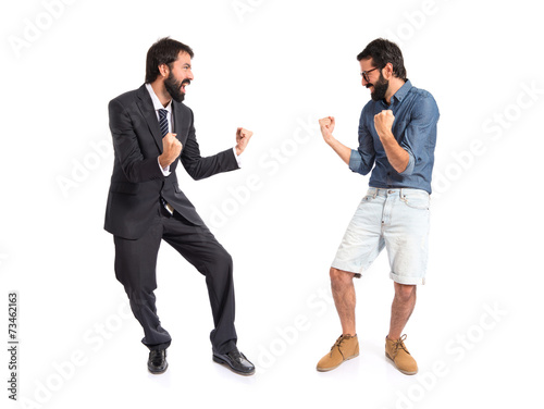 yes, fun, expression, happiness, success, succeed, celebration, positive, smile, energy, lifestyle, excited, winner, gesture, celebrate, successful, victory, happy, isolated, man, model, male, person, adult, hispanic, attractive, caucasian, photogenic, latin, young, beard, brunette, slim, business, men at work, manager, businessperson, boss, fashion, hipster, goggles, modern, trendy, culture, partner, brother, friends, twin