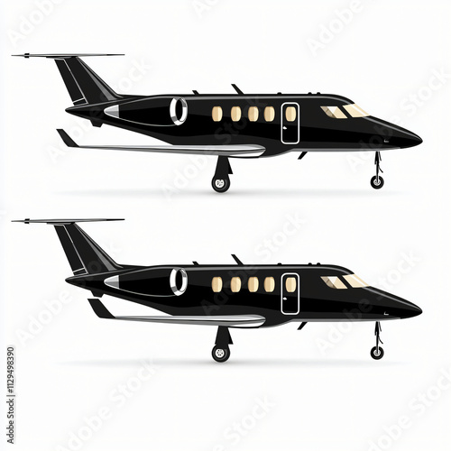 two black private jets, icon or illustration, white background