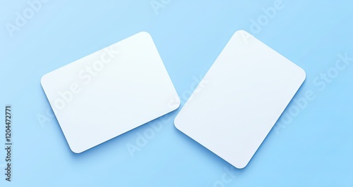 Two Blank White Plastic Card Mockups with Rounded and Rectangular Corners on Light Blue Background