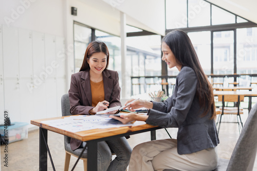 Two businesswoman working with analysis data investment plan, Business startup and marketing presentation,