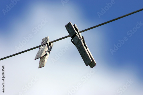 clothespin, clothespin, pinned, pin, plug, spill, clothespin, clothespin, clothespin, 2, line, clothes line, sky, blue
