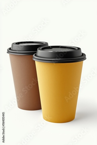 Two coffee cups with black lids isolated on white background