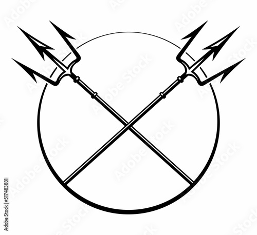 Two crossed tridents. Trident logo design concept. Isolated on white background.