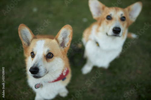 Two cute corgi dogs. Corgi closeup