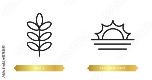 two editable outline icons from nature concept. thin line icons such as acacia, landscape inside frame vector.