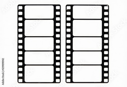 Two film strips with blank frames on white background