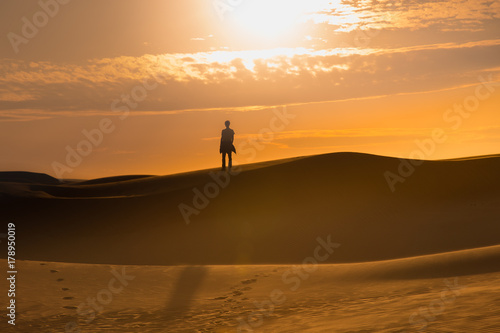 Two human silhouette in the sand desert