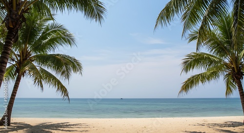 beach, palm tree, ocean, sea, sand, tropical, paradise, vacation, travel, summer, clear, blue, sky, water, serene, tranquil, peaceful, natural, beautiful, scenic, nature, coastline, shore, island, holiday, sun, warm, idylli, inviting, pristine, calm, turquoise, horizon, escape, relaxation, quiet, exotic, framed, picturesque, untouched, clean, coastal, dream, leisure