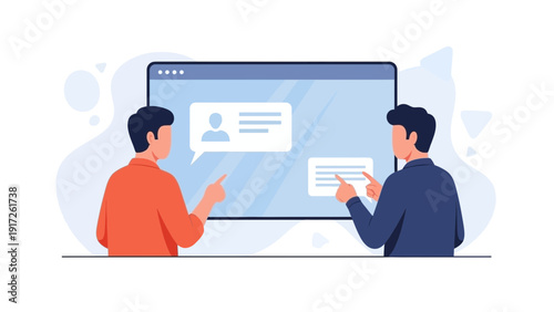 online, communication, chat, message, digital, screen, discussion, collaboration, teamwork, meeting, business, people, illustration, vector, graphic, concept, modern, technology, interaction, dialogue, information, sharing, strategy, planning, learning, education, work, office, creative, flat