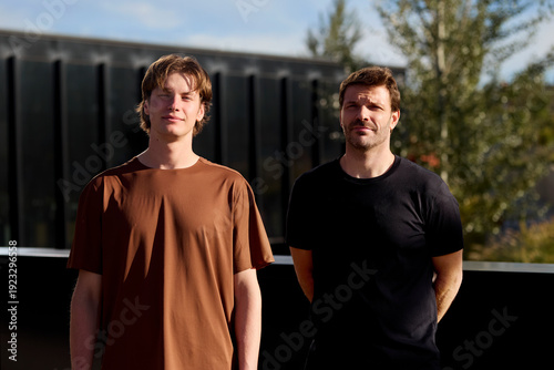 Two men standing outdoors after running session
