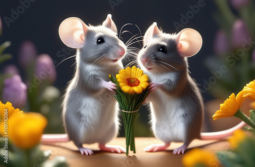 two mice with a bouquet of yellow flowers