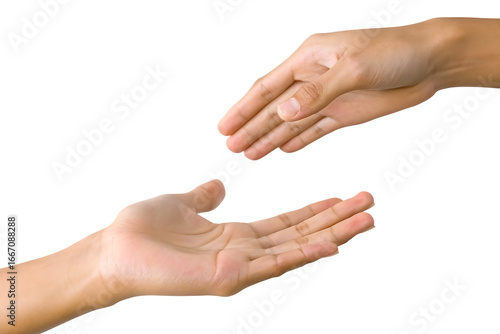 Two Open Hands Reaching Towards Each Other on Background giving isolated on a transparent background