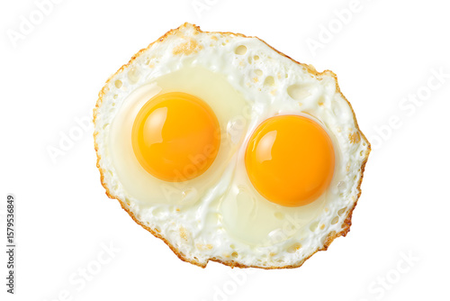 Two perfectly fried eggs with bright yellow yolks isolated on transparent background