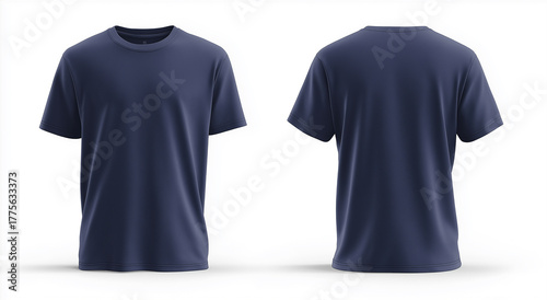 Two plain dark navy blue crew neck short sleeve t shirts shown front and back on white background t-shirt