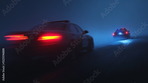 police, car, night, fog, pursuit, chase, law, enforcement, emergency, speed, siren, road, traffic, highway, light, dark, blue, red, vehicle, motion, blur, driving, dangerous, danger, accident, criminal, safety, security, transport, patrol, police officer, night time, foggy