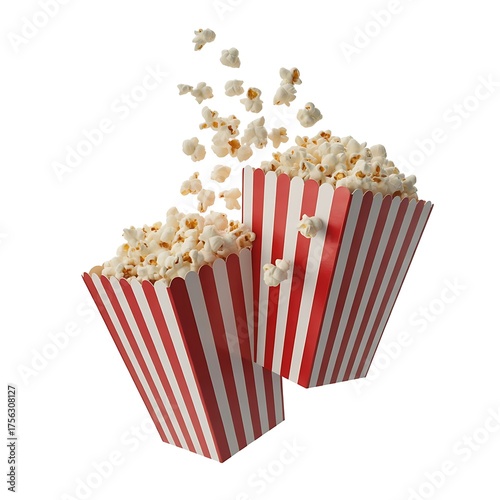 Two Popcorn Boxes with Flying Kernels on White snack