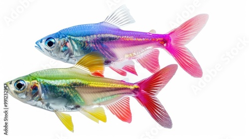 fish, rainbow, colourful, aquarium, pet, underwater, water, nature, marin, wildlife, animal, fauna, tropical, bright, fin, tail, scale, gill, eye, body, swimming, aquatic, fresh water, closeup, macro, isolated, white, background, studio, colours, high-coloured, pastel, red, blue, green, yellow, orange, purple, pink