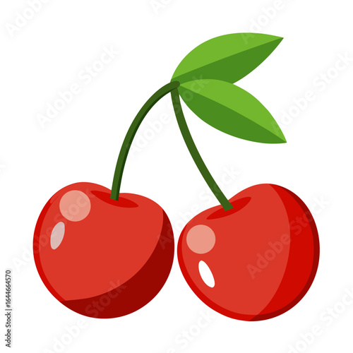 cherry, fruit, red, sweet, food, berry, round, shape, leaf, stem, green, pair, couple, healthy, fresh, natural, organic, delicious, tasty, snack, dessert, ingredient, vitamin, nourishment, juicy, ripe, summer, garden, fruit farm, simple, graphic, design, item, produce, salad