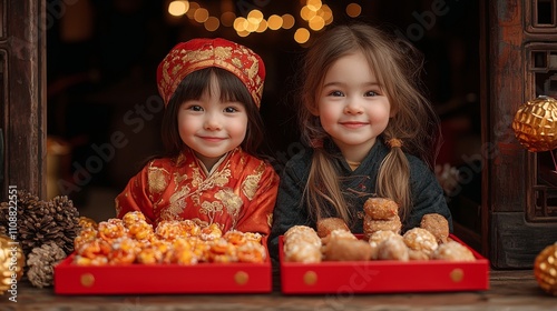girl, smile, traditional, clothing, snack, festival, culture, happiness, portrait, celebration, food, asian, children, joy, festive, atmosphere, wood, decoration, candle, background, cute, expression, red, gold, treat, photo, lifestyle, family, love, together, sweet, tinsel, cheerful, scene, innocence, vibrant, friendship, cosy, playfulness, craftsmanship, gathering, hand-made, tempting, eye, playful