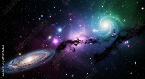 Two Spiral Galaxies Colliding in a Colorful Nebula with Stars galaxy space