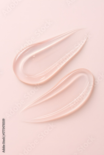 Two strokes of crystal clear cosmetic gel isolated on a white background. Transparent skincare product texture, perfect for beauty, cosmetics, and skincare branding or design mockups.