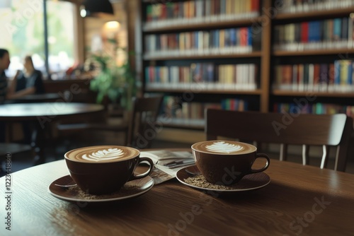 hot drink, latte, art, bookshelf, cosy, atmosphere, beverage, wooden, table, relaxation, interior, studying, friends, reading, warmth, socialising, espresso, morning, ritual, culture, warm, tone, casual attire, meeting, peaceful, setting, book, lover, shop, gathering, aromatic, inviting, space, drink, social, interaction, afternoon, break, contemporary, design, local, enjoying, comfort, sipping, pastry, literature, creative, community