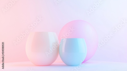 minimalist, modern, design, still life, pastel, colours, shape, sphere, vase, geometric, abstract, art, composition, simple, clean, elegant, soft, smooth, gradient, background, pink, blue, white, light, shadow, three-dimensional, render, digital artwork, illustration, creativity, visual, aesthetic, trendy, contemporary, style, decoration, interior, graphic, template, presentation, showcase, advertising, marketing, branding, copy space, empty space