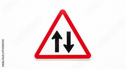 Two Way Traffic Road Sign Isolated on White Background - Warning Symbol with Up and Down Arrows for Opposing Directions