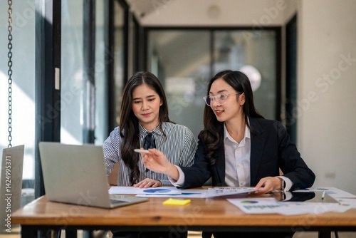 woman, sitting, table, laptop, paper, front, discussing, something, important, business, serious, atmosphere, project, teamwork, meeting, people, office, computer, professional, talking, businesswoman, young, female, working, together, team, communication, technology, colleague, manager, occupation, adult, corporate, happy, group, modern, cooperation, employee, smiling, job, entrepreneur, asian, partner, indoor, planning, businessman, workplace, co-worker