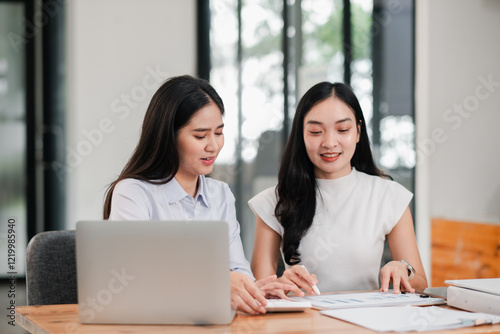 business, woman, teamwork, collaboration, office, laptop, document, professional, meeting, workspace, modern, discussion, planning, strategy, colleague, work, corporate, technology, partnership, communication, brainstorming, project, desk, productivity, sharpened, career, success, diversity, innovation, leadership, management, cooperation, female, job, employment, industry, workplace, interaction, analysis, consulting, development, efficiency, goal, achievement