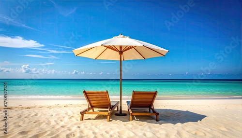 beach, ocean, tropical, paradise, vacation, summer, relaxation, seascape, coast, sandy, water, blue, sky, cloud, chair, umbrella, sun, holiday, scenic, nature, travel, destination, tranquil, serene, peaceful, leisure, get-away, warm, sunny, idylli, exotic, shore, coastline, sand, sea, horizon, daylight, no people, empty, calmness