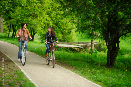 girl, girlfriend, female, woman, feminine, bicycle, cycle, bike, park, spring, summer, landscape, picturesque, greener, tree, grass, 2, together, path, lane, paseo, day off, pastime, leisure, young, carefree, sport, health, way of life, lifestyle, active, movement, modern, transport, popular, outdoors, ride, stroll, delight, picnic, pleasure, joy, sunshine, weekend, hobby, interest, nature, communion